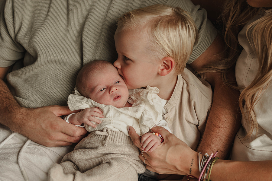 Newbornshoot aan huis met het hele gezin